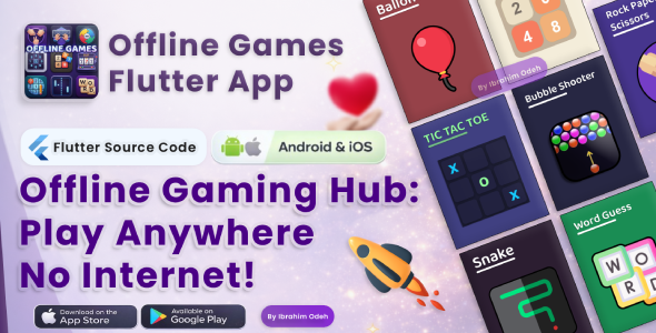 Build a premium offline games hub with this clean and modern Flutter source code. This project bundles 22 fun HTML games that run 100% offline (no server, no hosting) inside an optimized WebView experience. Perfect for reskinning, fast publishing, and monetization. The app is built with a strong focus on performance, user retention, and easy monetization, making it ideal for developers, entrepreneurs, and resellers who want a ready-to-publish solution instead of starting from scratch. This is a Flutter-based offline games HUB that uses WebView to load 22 HTML5 games from local assets. All games are built using HTML, CSS, and JavaScript and run completely offline inside Flutter WebView. The provided Flutter source code focuses on the application layer: UI, navigation, games hub logic, favorites & recent system, player profile, playtime tracking, and AdMob monetization. What You Get- Flutter Source Code (Android + iOS)