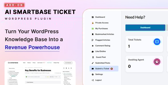 Transform your WordPress site into a professional, AI-powered support hub with the AI SmartBase Tickets Add-On. Manage every customer inquiry efficiently and deliver faster, smarter support directly from your WordPress dashboard. Designed to seamlessly integrate with the AI SmartBase Knowledge Base plugin, this add-on makes ticket management intuitive, organized, and stress-free. Powerful Features to Streamline Support- Unique Ticket ID & Status Tracking: Easily monitor Open, Awaiting Reply, and Closed tickets. Never lose track of a customer request.