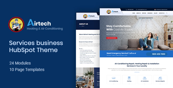Airtech Service business Hubspot theme developed specifically for all types of service business, such as plumbing, heating, air conditioning, roofing and other similar businesses, etc. Airtech theme comes with necessary features for your online presence like gallery, blog, testimonial, team and about page, etc. Airtech can be a great choice for your online presence. Airtech Hubspot theme Description Full Features List:- 10 Page templates