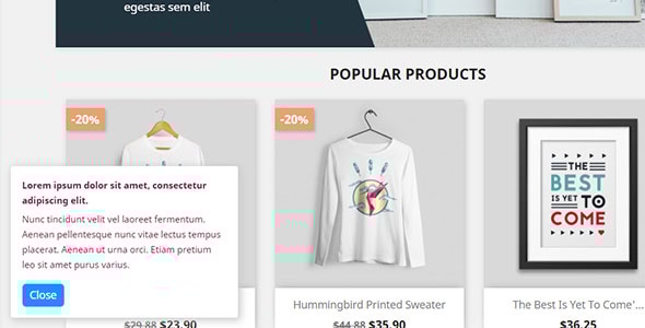 Alert Box, Cookie Law, GDPR, LGPD for Prestashop With bePopup you can customize a beautiful floating popup in your online store, with several customization possibilities. See below the features of bePopup. - Enable and disable message – Display on all pages or only on home – Set background color of the popup – Set default text color for text – Set popup width in pixels or percentage – Set rounded border – Set action button background color – Set action button text color – Set action button text – Set popup position on the screen – Insert the message as you wish in a WYSIWYG editor bePopup – Adicione mensagens e informativos aos seus clientes. Com o bePopup você pode customizar um lindo popup flutuante em sua loja virtual, com diversas possibilidade de customização. Veja abaixo as funcionalidades do bePopup. - Ativar e desativar mensagem – Exibir em todas as páginas ou somente na home – Definir cor de fundo do popup – Definir cor de texto padrão do texto – Definir largura do popup em pixels ou porcentagem – Definir borda arredondada – Definir cor de fundo do botão de ação – Definir cor de texto do botão de ação – Definir texto do botão de ação – Definir posição do popup na tela – Inserir a mensagem como desejar em um editor WYSIWYG(Only For Premium Category Products !)