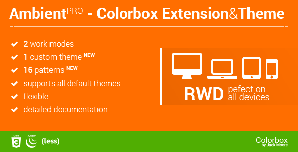 is an extension / effect for Colorbox, the most popular lightbox plugin for jQuery developed by Jack Moore. It works great with all, default and custom, Colorbox themes. AmbientPRO allows you to create nice and cosy ambient effect that your users will love. It comes with an additional Theme – modern and minimal Colorbox skin. An Blur Background for ColorBox adds a visually appealing blurred effect to the background behind a modal or lightbox, enhancing the user's focus on the content. Adding a custom theme gives it a distinct style consistent with your application's design.Preview and Adjustments