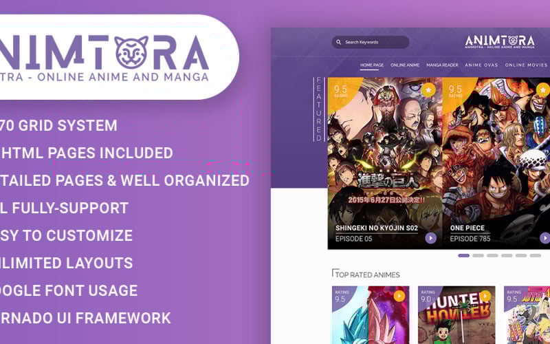 Key Features of Animotra - Online Anime and Manga Website Template: