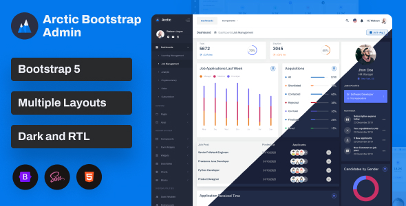 Arctic is a modern, clean, and fully responsive Bootstrap Admin Dashboard Template designed for building powerful admin panels, SaaS dashboards, CRM systems, analytics tools, project management apps, and enterprise web applications.