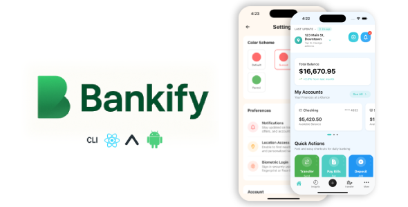 Bankify is a modern mobile banking and finance app template built with React Native CLI . It offers a complete, ready-to-use UI for digital banking, crypto wallet, expense tracking, and payments — all in one stylish and high-performance app. Key Features:- 15+ ready-to-use screens