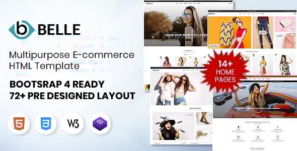 Belle – Multipurpose eCommerce Bootstrap 4 Html Template. comes with 14+ ready-made Home page layouts and over 72+ other HTML pages. Belle is perfect for different category store websites: fashion, accessories, shoes, bags, cosmetics, auto parts, furniture, minimal, shop and any more… You can create many unique and modern websites with Belle. The code is very easy to modify and make it suit anything you need. Belle Ecommerce Html Template Endless Features- 14+ Pre-Set Home page Layouts
