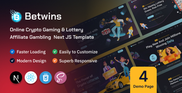 Betwins is a cutting-edge Next JS template designed for crypto gaming, online casinos, sports betting, lottery platforms,and gambling affiliate websites. Built with a sleek and modern design, Betwins offers a seamless user experience, fast performance, and full responsiveness across all devices. Whether you’re launching a crypto-based gaming platform, an online betting portal, or an affiliate gambling site, Betwins provides the perfect foundation. Betwins – Online Lotto & Lottery React NextJS Template – Miscellaneous Site Templates Live Preview Looking for a high-quality React JS template for your lottery or gambling business? Look no further than Betwins – Online Lotto & Lottery React JS Template.This template is specifically designed for lotteries, raffles, sweepstakes, chance, giveaway, lotteries, lottery, lottery game, lotto, lucky, lucky number, mega millions, Powerball, gambling, raffle, sweepstakes, ticket and other chance-based games. Key Features: Modern & Responsive Design – Fully optimized for desktops, tablets, and mobiles. Crypto Payment Ready – Supports Bitcoin, Ethereum, and other cryptocurrencies. Affiliate Gambling Integration – Ideal for casino and sports betting affiliates. Lottery & Gaming Sections – Custom-built pages for lottery, sports betting & casino games. Pre-built Home & Inner Pages – Includes multiple homepage variations and essential pages. SEO Optimized & Fast Loading – Ensures better ranking and high performance. Easy Customization – Well-structured code with Next JS, CSS3, Bootstrap 5, and SASS. Dark & Light Modes – Switch between themes for an enhanced user experience. Multi-language & RTL Support – Expand your audience worldwide. Cross-Browser Compatible – Works flawlessly on Chrome,Firefox, Safari, Edge & more. Perfect For: Crypto Casino & Gambling Websites Online Lottery & Sports Betting Platforms Affiliate Gambling & iGaming Portals Crypto Betting & Esports Platforms Template Features:- Pure React+Next.js without jQuery