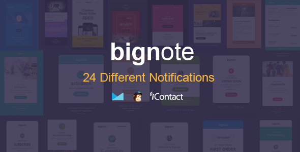 Bignote – 24 Unique Responsive Email Notification set + Online Access