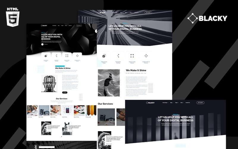 Key Features of Blacky - Minimal Digital Agency Website Template: