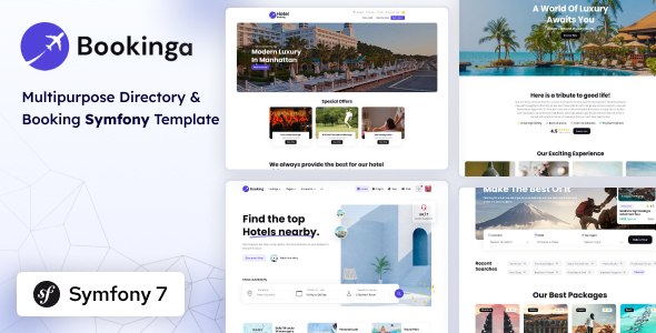 Bookinga is a multipurpose Symfony 7 Template. Crafted for all the websites that offer booking services. Mainly, we have focused on the following domains,- Hotel booking