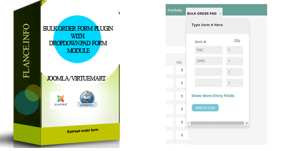 The ecommerce sites sometimes needs o make bulk order of the products by item number. Products adding one by one can slow down the purchase experience and functionality of the site . We developed Virtuemart bulk order form pad plugin and dropdown form module enhances the functionality of Virtuemart eccommerce component by enabling Bulk order of the products and adding or saving them to shopping cart. 1. To use the Bulk Order Form Plugin in the articles or anywhere just put the following shortcode {product_bulk_order} . It will enables the show of the Bulk Order Form in the content. and Please config the in plugin admin backend. It has 3 input config fields which defines 1. The quantity amount Input fields 2. The product input fields. 3 . CSS style input field where you can put custom css Please see Demo Page of the Plugin 2. Bulk Order Dropdown Pad Form Module . I t is dropdown form which can be put anywhere on the site. Just select the module position and enable it. Admin backend module config 1. Amount of Multiple Products – it is amount of the products input fields currently it is 4 input fields. 2. Show More Entry Fields Link—it is link to the page of where content plguin for bulk order form Please see the image to see the show of Bulk Order Dropdown Pad Form Module(Only For Premium Category Products !)