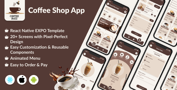 CoffeeBuzz - React Native Template (Expo) | eCommerce App for Coffee Shop | Android & iOS UI Kit
