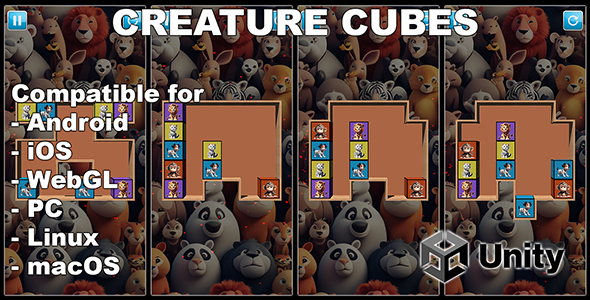 Welcome to Creature Cubes - Unity Puzzle Game With AdMob , an innovative and highly engaging tile-matching puzzle game designed to captivate players with its unique gameplay mechanics and vibrant visuals. Available on CodeCanyon, this game is perfect for developers looking to offer an exciting and addictive puzzle experience. With 60 challenging levels, Creature Cubes provides endless hours of fun and can be easily customized or expanded to suit your specific needs. Key Features of Creature Cubes - Unity Puzzle Game With AdMob 1. Innovative Gameplay Mechanics Creature Cubes sets itself apart from traditional match-three puzzle games by introducing a fresh twist. In this game, players must clear the grid by matching blocks of the same type. However, instead of simply swapping adjacent blocks, players can move blocks horizontally until they hit an obstacle. This unique mechanic adds a strategic layer to the gameplay, requiring players to think several moves ahead to create the best matches. 2. 60 Levels of Increasing Difficulty The game features 60 levels, each carefully designed to offer a progressively challenging experience. The levels are not only varied in terms of layout and block types but also introduce new obstacles and challenges as the player advances. This keeps the gameplay fresh and exciting, ensuring players remain engaged and entertained. 3. Easily Modifiable and Expandable Creature Cubes is built with flexibility in mind. The game’s levels are easily modifiable, allowing developers to tweak or expand them according to their preferences. Whether you want to change the difficulty, add new block types, or introduce additional obstacles, the game’s codebase is structured to support seamless modifications. This makes Creature Cubes an excellent choice for those looking to create a unique puzzle game experience. 4. Vibrant Graphics and Animations The game features vibrant graphics that are sure to appeal to players of all ages. Each block type is uniquely designed, with eye-catching colors and animations that make the gameplay experience visually rewarding. The game also includes smooth transitions and effects, enhancing the overall aesthetic appeal. 5. Optimized for Performance Creature Cubes is optimized for performance across a wide range of devices. Whether played on a desktop, tablet, or smartphone, the game runs smoothly and efficiently, providing a consistent and enjoyable experience. This makes it ideal for developers looking to offer a puzzle game that appeals to a broad audience. 6. Strategic Elements The game’s horizontal block movement mechanic adds a strategic dimension, challenging players to think critically about each move. Players must consider not only the immediate matches but also how each move will impact the future layout of the grid. This strategic element enhances the game’s replayability, as players strive to improve their scores and complete each level with the fewest moves possible.(Only For Premium Category Products !)