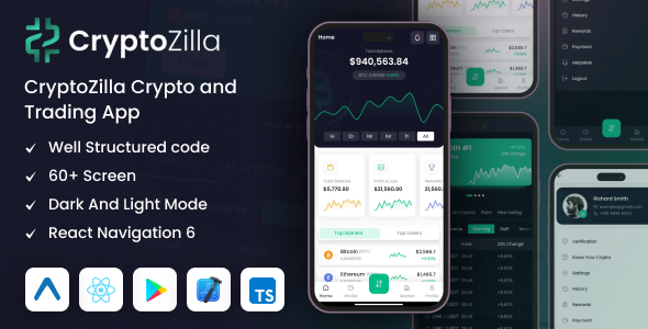 CryptoZilla – React Native Expo Cryptocurrency Mobile App Template