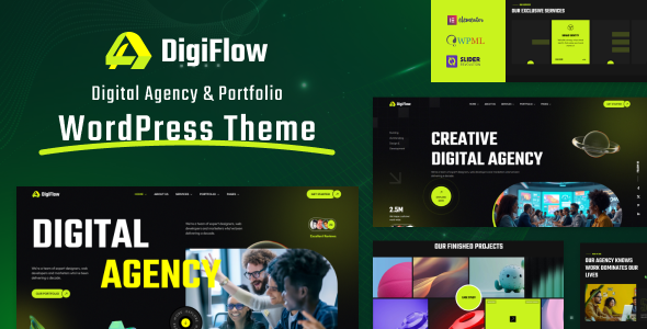 DigiFlow is a creative Digital Agency & Portfolio WordPress Theme designed for creative professionals, digital agencies, freelancers, and portfolio websites. Built with the powerful Elementor page builder, DigiFlow empowers users to craft stunning, fully responsive websites with ease — no coding required. template comes packed with a collection of stylish, ready-to-use demos and inner pages tailored to showcase creative work, services, and team profiles beautifully. Thanks to Elementor’s intuitive drag-and-drop interface, you can customize every element , from typography and colors to layouts and animations, allowing for complete creative freedom to match your brand identity. This is fully compatible with WordPress’s latest version and includes SEO-friendly, fast-loading, and cross-browser-compatible code, ensuring an optimal user experience. Whether you want to present an impressive portfolio, promote your agency’s services, or launch a creative personal site, DigiFlow offers all the essential sections: beautiful galleries, project showcases, testimonials, blogs, and contact forms, all styled to perfection. Its mobile-friendly design ensures your content looks crisp on any device. For anyone looking for a flexible and creative WordPress solution, DigiFlow with Elementor is the perfect choice to build a professional online presence effortlessly. Check out the theme highlight features- 2 Elegant Homepage Layouts