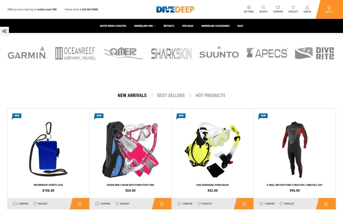 Key Features of DiveDeep Snorkeling Equipment PrestaShop Theme
