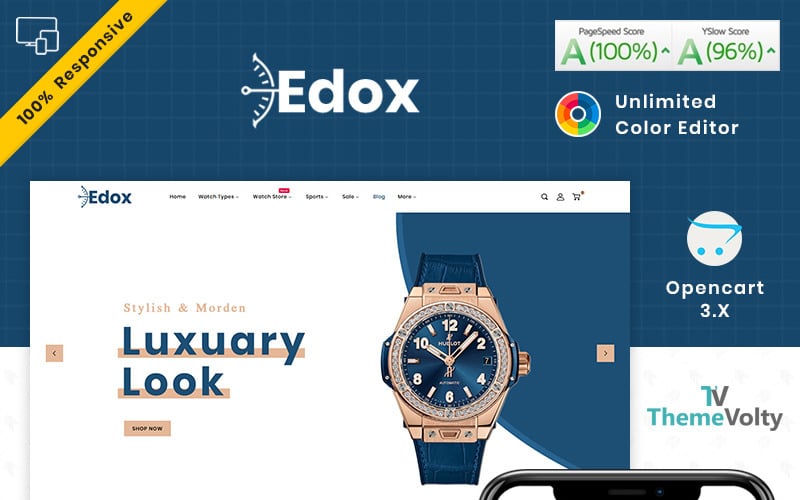 The Edox template is fully responsive, ensuring that your store looks great and functions smoothly on all devices, including smartphones, tablets, and desktops. This is especially important for high-end products like watches, where customers often browse and shop while on the go.