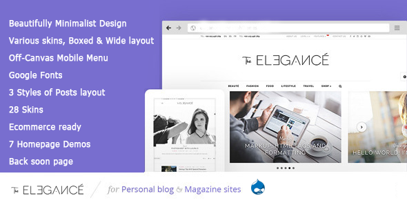 Elegance – A Flawlessly Minimalist Blogging Drupal 7.6 Theme is a premium theme designed for writers, bloggers, and content creators who value simplicity and sophistication. Its clean and airy layout ensures your content remains the center of attention, free from unnecessary distractions.