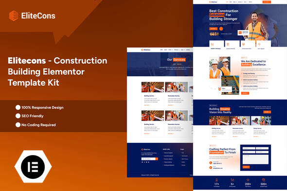Elitecons – Construction Building Elementor Pro Template Kit is designed specifically for construction, renovation, architecture, manufacturing, engineering, Real Estate, Solar Power, Industry, and building service company professional website. It has home pages and 14 inner pages and has a complete template package to launch your Construction Building Services website. Elitecons - Construction Building Elementor Pro Template Kit is a clean and professional design with a 100% responsive layout, retina-ready. Save your time to making a Construction Building Services website with this Elementor template kit. With Elementor Page Builder, you can easily edit or customize it, no coding is required, just drag and drop. Elitecons - Construction Building Elementor Pro Template Kit contain page content for Elementor page builder. This kit has been optimized for use with the free Hello Elementor theme but may be used with most themes that support Elementor. Layout Features :- Modern and Professional design