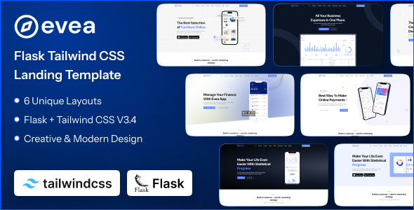 Evea is a fully responsive, clean, and modern high-converting App showcase landing template. It is built with Flask v3 and Tailwind CSS v3.4.1. It offers a fully responsive layout that adapts seamlessly to any device, ensuring an optimal user experience. Its clean and well-structured code, accompanied by clear comments, makes it easy to customize and tailor to your brand’s identity. Whether promoting a mobile app, software solution, or digital service, Evea creates a striking online presence. The template provides a sleek, organized layout, making it easy to showcase your content and engage users effectively. Key Features:- Built on Tailwind v3.4.1