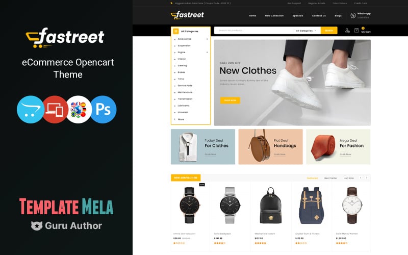 Fastreet - Multipurpose OpenCart Template is a dynamic, responsive, and highly customizable template designed to cater to a wide range of online stores, from fashion boutiques, electronics shops, furniture stores, accessory shops, and more. With its clean design, flexible layout, and robust features, Fastreet is an ideal solution for businesses looking to build a modern and attractive eCommerce site on OpenCart.