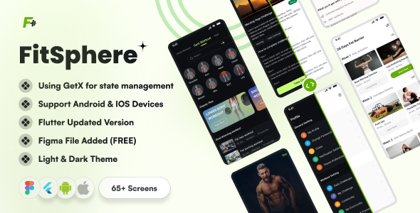FitSphere is a complete Flutter Fitness & Workout Tracking UI Kit designed to help you launch beautiful, functional, and cross-platform fitness applications quickly. Built with Flutter & Dart, it offers clean code, customizable components, and an intuitive design to fit gym apps, workout planners, and personal training platforms. Why Choose FitSphere? This Flutter UI Kit saves you weeks of design and development time. It comes with professionally designed, pixel-perfect screens that are 100% responsive and optimized for both Android & iOS. The UI is built with reusable Flutter widgets, making it easy to customize for your own branding and fitness business needs. Key Features- Light & Dark Mode – Modern theme support with system & manual switching.