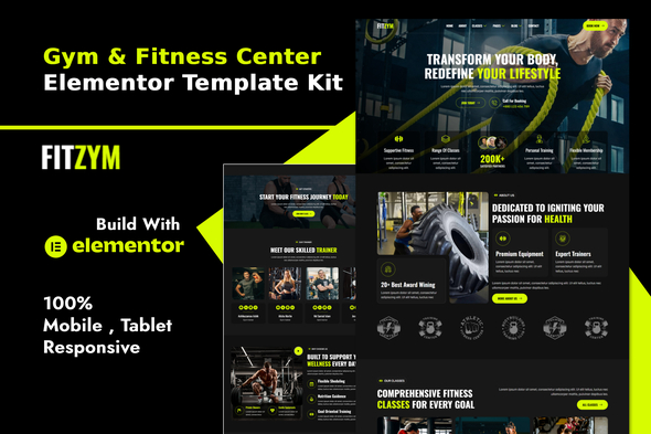 Fitzym - Gym & Fitness Center Elementor Template Kit is a bold, energetic, and modern website template designed for gyms, fitness studios, personal trainers, and wellness centers. Fitzym has a clean and professional design with a 100% responsive layout. It is retina-ready and very easy to customize because it uses Elementor, so you don’t need a single line of coding!Layout Features :