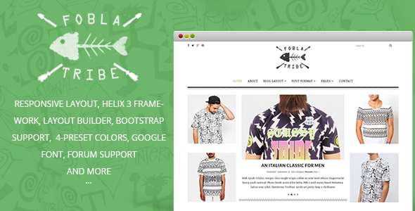Fobla Tribe is a our special Joomla 3 template for your Blog site. It is cross browser compatible, mobile ready so it will look great on smart phones, tablets as well as laptops and desktop displays. Powered by Helix 3 framework, this template is very powerful yet easy to use and customize, whether you’re a Joomla pro or a beginner with no coding skills. The demo is for a Fashion Blog, but you can use this template for many different purposes as: books, travel, garden, handmade… FEATURES Responsive Design: FoblaTribe - Responsive Blog Joomla Templatemeans that you only need one template for the desktop, tablet, smartphone and other mobile devices. 4 Extensions from AliThemes: FoblaTribe - Responsive Blog Joomla TemplateArticles Carousel (10$), Alt Images Lightbox, Alt Simple Image Slider, Alt Articles Ticker (10$). Save up to 20$. Multi-Languages: FoblaTribe - Responsive Blog Joomla Template is also fully support multi-languages. We had already installed 2 languages: English and Hebrew. You also can use one default language to build your website with no time. RTL Language Support: Supports RTL (Right to Left) Language based Designs like Arabic, Farsi & Hebrew. Layout Builder: Allows anyone to customize the existing theme in any shape or dimensions without having any programming language! Mega Menu: allows you to display a ton of content in menu item including text, images, module and articles. Off-Canvas Menu: used primarily with Mobile and touch devices and can provide an extremely useful and beautiful experience for your users. Rich typography: Advanced Typography based on Bootstrap would enable you styling your Tables, Forms, and Buttons along with other elements to make your website more beautiful. HTML5 Base Template: We brought HTML5 in Our Templates to make elegant, modern and SEO friendly website that would be fully functional & represents awesome typography. Built With Less CSS: You can reduce over requests to browsers while making CSS development and it makes your whole website more powerful and speedier than ever. Use Helix 3 Framework: Helix Framework is one of the best light and feature rich responsive framework for Joomla Templating. Responsive Contact Form: Captcha Facility is available, Easy and friendly back-end administration CSS & Javascript Compression: Helix decreases your website loading time drastically by using Advanced CSS & JS compression systems that works with all types of browsers. Powered By BootStrap 3: Bootstrap 3 is made upon responsive CSS Designs with less code which enhances the overall look of your website.(Only For Premium Category Products !)