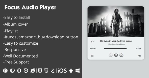 - It often includes the track name, artist name, and album cover art, providing a professional look to the player.