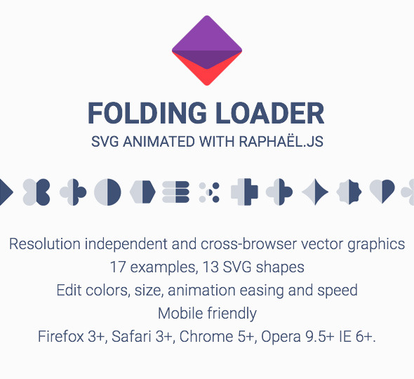 Folding Loader SVG Animated made Raphael JavaScript Library. For page preloaders, content loaders, process indicators. A Folding Loader Animated SVG is a visually appealing animation that simulates a folding or unfolding motion, typically used as a loading indicator on websites or apps. This type of loader is often created using SVG (Scalable Vector Graphics) combined with CSS animations to achieve the folding effect. Here’s an example of how you can create a Folding Loader with SVG and CSS- Javascript based animation
