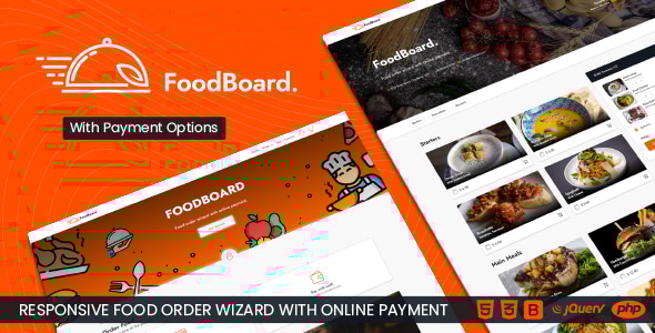 FoodBoard is a fully responsive, simple and clean food order wizard built with HTML5, CSS3, jQuery and PHP using Bootstrap4. With its PHP engine FoodBoard is able to handle online payments using the safe Stripe checkout. User can choose from payment options: either pay online or pay with cash on delivery. In each case a formatted summary table is shown at the end of the order and email notification is also sent to the user and to the site owner. Features- Clean and fully responsive layout