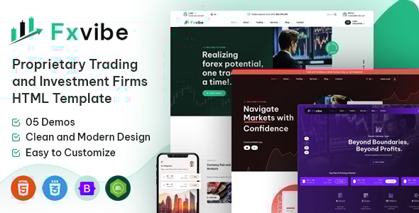 FxVibe – Forex Prop Firm HTML Template would be suitable for businesses that are involved in proprietary trading or investment firms specializing in foreign exchange (forex) markets. Proprietary trading firms engage in buying and selling financial instruments, including currencies, using their own capital rather than clients’ money.. This Template is ideal for all businesses that are related to finance, banking, business consulting, personal loan and credits, credit cards, finance, insurance, broker business and Forex trading etc. The template comes with a creative 03 homepage design layouts, responsive and 30+ valid HTML files. The design is very elegant and modern, and also very easy to customise with 1170px grid. We hope so you will feel happy with them. Features Overview of FxVibe- Responsive Layout Design: What ever you are using the device your site will run as it should be. The FixVibe is fully responsive layout for all type of devices.