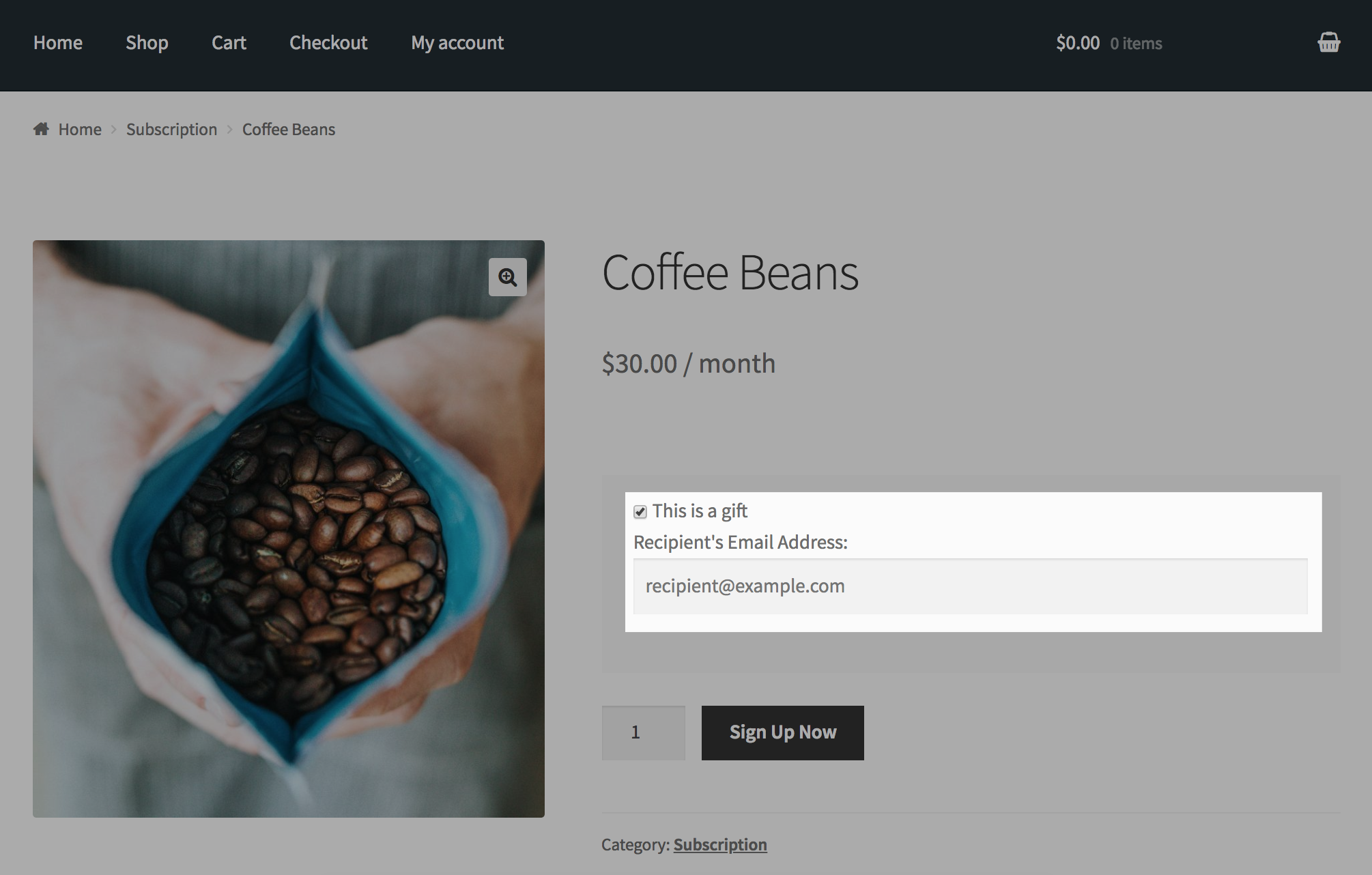 Recommended Plugin: WooCommerce Subscriptions Gift