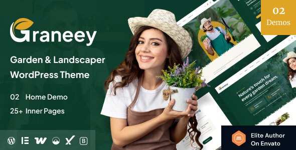 Graneey is a modern, flexible, and easy-to-use WordPress theme crafted specifically for garden care, landscaping services, lawn maintenance, and outdoor design professionals. Whether you’re a solo gardener or run a full-service landscaping company, Graneey gives you everything you need to beautifully showcase your services and grow your business online. Built with the powerful Elementor page builder, Graneey offers a seamless drag-and-drop experience, allowing you to design your website effortlessly—no coding required. This theme comes with multiple pre-built homepages, beautifully designed inner pages, and a variety of customizable layouts to suit different styles and project showcases.- Fully responsive & retina-ready – Ensures a flawless experience on all devices.