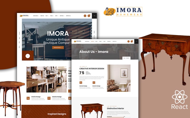 The Imora - Antique React Template is a beautifully designed React-based Imora - Antique React Template created for businesses or projects focused on antiques, vintage items, or similar niches. It offers a rich and visually appealing interface, ideal for websites like online antique stores, vintage furniture shops, or even blogs focused on historical items and collections.