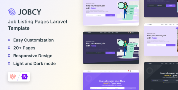 Jobcy – is a modern job board Laravel 12 template designed to connect people looking for a job with work-hunting employers. This template represents a simple design to help build the website for advertising vacancies, finding suitable staff, and receiving employers’ resumes and CVs. It will perfectly suit projects of direction: Job Search, Directory Portal, Resume Market, Recruitment Agency, and the like. Jobcy – has super clean, simple, easy customizable components and widgets, etc This job posting template comes with an awesome, unique, and latest new design. Also, we ensure you can easily design any type of job classified website template for jobbers and recruiters. FEATURES:- Built with Laravel 12 & Bootstrap 5.3