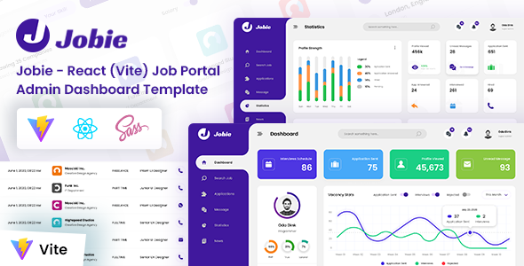 Jobie - React (Vite) Job Portal Admin Dashboard Template is a modern, fully responsive, and feature-packed React-based template designed for job boards, recruitment platforms, HR management systems, and career portals. Built with React and Vite, Jobie delivers fast performance, modular components, and an intuitive user interface for managing job listings, applications, employers, and candidates.