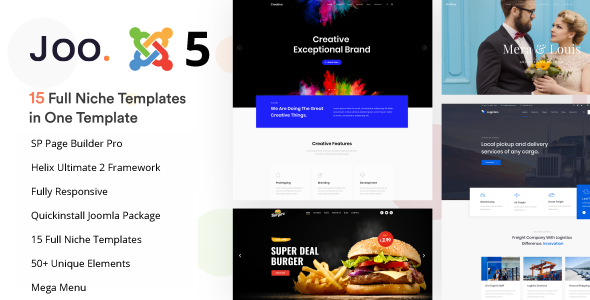 Joo is a niche multipurpose 5 template created for creative, corporate, business, restaurant, logistics, barber shop and wedding websites with RTL support. 15 Full niche templates demo in one template to get you started quickly. Template Features:- SP Page Builder Pro