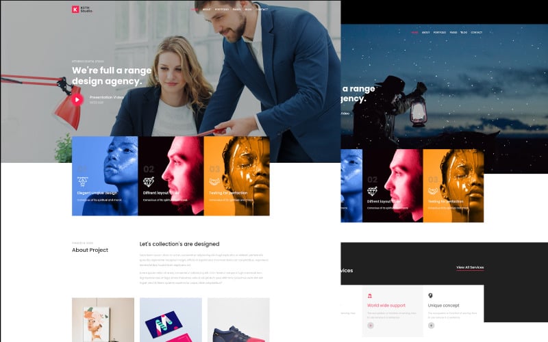 Keth Studio Digital Agency &Business Premium HTML Website template offers various homepage layouts, allowing you to choose the one that best fits your business or agency’s branding. These options may include hero image sliders, video backgrounds, service highlights, and more.