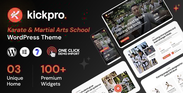 Kickpro is a dynamic and powerful WordPress theme crafted for martial arts schools, karate dojos, taekwondo clubs, self-defense academies, MMA gyms and fitness studios offering combat training. With three uniquely designed home page layouts, Kickpro allows you to present your schools identity in the style that suits you best—whether bold and action-driven, minimal and traditional or modern and club-focused. Built with the flexibility of the Elementor page builder, customization becomes effortless. Simply drag and drop to adjust layouts, edit content or build new sections without touching any code. The theme is fully responsive and performance-optimized, ensuring an excellent browsing experience across desktops, tablets and mobile devices. Kickpro includes all essential inner pages and elements required for a professional martial arts website—from class schedules and training programs to instructor profiles, student testimonials, events, pricing and contact pages. Its clean structure, SEO-friendly coding, smooth animations and intuitive navigation help you convert visitors into members with ease. Perfect for schools looking to build credibility and showcase their programs, Kickpro provides a polished, modern and engaging platform to highlight your training, community and expertise. Key Features- Modern & Responsive Design: Fully responsive layout that looks stunning on all devices, from desktops to smartphones.