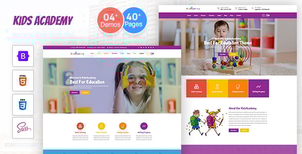 KidsAcademy – kids & kindergarten school HTML template is a powerful HTML 5 Template. Build whatever you like with this template that looks effortlessly on-point in Kids, Kindergarden, Blog, School, School, Kids Study, Kids Care home related websites. With all, it features you can build something great. It is ultimate flexible with loads of nice options and features. It’s fully responsive design and clean was tested on all major handheld devices. Unlimited possibilities & flexible that will easily be able to support every site development. Don’t wait – Launch Your Startup Now! Key Features Kid-Friendly Modern Design- Soft colors, playful icons, and child-focused visuals