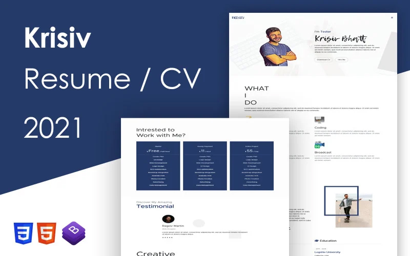 Krisiv - Resume CV One Page Bootstrap Template is a sleek and modern template designed for professionals who want to showcase their resumes, portfolios, and CVs in a visually appealing and organized manner. Built using the powerful Bootstrap framework, Krisiv is fully responsive and easy to customize, making it ideal for job seekers, freelancers, creatives, and anyone looking to present their professional background in a clean, concise, and attractive way.