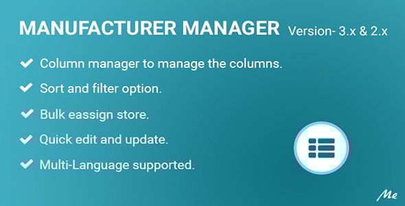 Features 1.Column manger to manage the columns. 2.Filter by Name,Store. 3.Bulk Assign Store. 4.Sorting Option which sort the all columns. 5.Add,change ,remove the manufacturer images. 6.Quick & Easy Update. 7.No changes in core files. 8.Multi-language Supported. 9.Easy to install and Manage. 10.Installation Guidance included.(Only For Premium Category Products !)