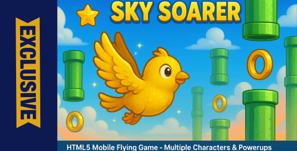 Experience the thrill of flight with Sky Soarer , a beautifully crafted HTML5 mobile game that combines addictive gameplay with stunning visuals. Perfect for websites, mobile apps, or as a standalone game, Sky Soarer offers endless entertainment with its gressive difficulty system, multiple characters, and dynamic environments. Key Features:- Responsive Design