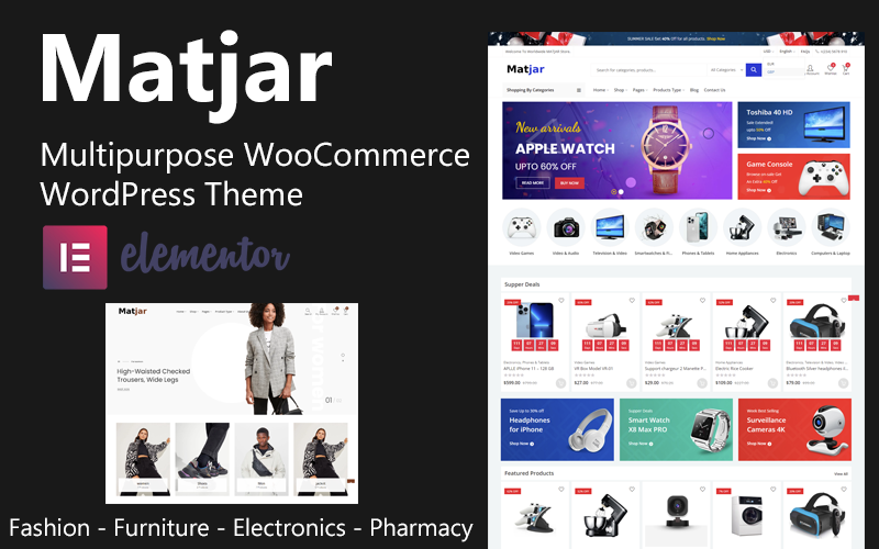 Matjar is a multipurpose WooCommerce WordPress theme designed for creating a wide variety of online stores and e-commerce websites. It's a flexible and powerful theme built to offer a seamless shopping experience for both store owners and customers. Matjar works great for any kind of online business, from fashion stores to tech shops, and more.