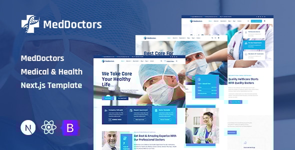 MedDoctors is a Medical & Health Next.js Template. Designed with great attention to details, flexibility and performance. It is ultra professional, smooth and sleek, with a clean modern layout. MedDoctors specially designed for Medical, Doctor, Health, Health Care, Healthcare, Hospital, Medical Care, Medicine, Dental, Dentist, Pharmacy and other Medical & Health related services. MedDoctors comes with most advanced and latest web technologies, enjoyable UX and the most beautiful design trends. Our template provides a platform to simply edit elements, choose styles and play around with the look and feel of your site!! Build beautiful, intelligent websites with over 03+ Homepage Concepts ready to go or combine, build a layout has never been easier. There is a huge range of +31 styled pages waiting for your customization, anything you can think of can be built with our template. If you are searching for innovative, modern and clean Next.js template, you must choose MedDoctors. MedDoctors comes with necessary features and pages such as Medical, Health, Doctor, Dentist and more. MedDoctors comes with necessary features for Medical & Health websites such as about pages, Testimonials, Clients, questions & answers, gallery, Departments, Doctor & single Doctor profiles, awesome blog pages and more. This HTML template can easily satisfy all of your needs. Main Futures:- 03+ Home Pages