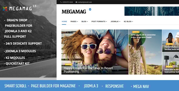 Megamag – K2 Magazine and Blogging for Joomla 3 Responsive Template is a modern and feature-rich Joomla template designed specifically for online magazines, news portals, and professional bloggers. Built with full support for the powerful K2 content component, Megamag offers advanced article management, rich media integration, and flexible layouts to help you publish and organize content with ease.