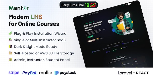 Mentor LMS is a powerful Learning Management System built with Laravel and React, designed for anyone who wants to launch an online learning platform quickly. Whether you’re an individual instructor selling your own courses, or you want to run a full SaaS marketplace where multiple instructors can sell and earn—LMS gives you everything out of the box. With a modern design, flexible user roles, secure payment integrations, and live class support, LMS helps you create a professional eLearning platform without coding expertise. Why Choose LMS?- Two Business Models: Use it as your personal course selling platform OR scale it into a multi-instructor SaaS marketplace.