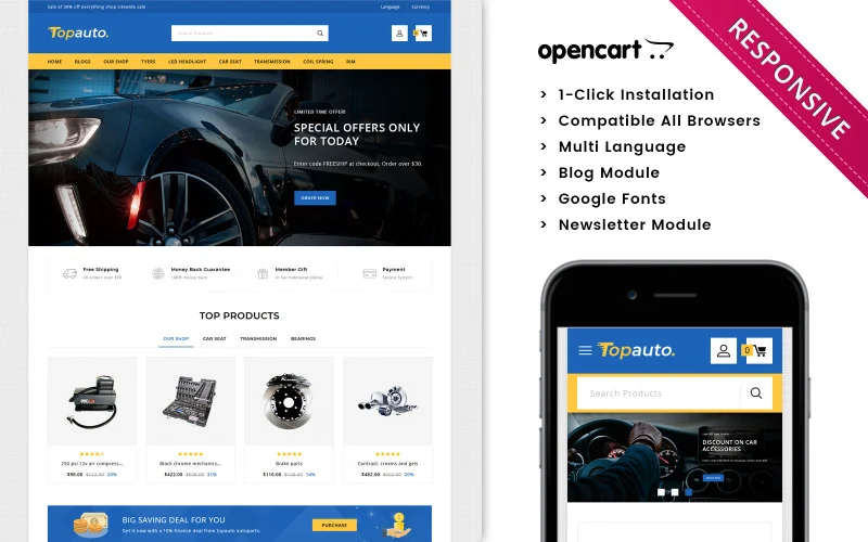 - The Olympus - Automobile Store Premium OpenCart Template is fully responsive, ensuring your store looks great and functions seamlessly across all devices, including desktops, tablets, and smartphones. This is critical in today’s mobile-first world, as customers increasingly shop on mobile devices.