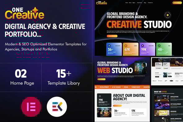 OneCreative – Digital Agency & Creative Portfolio Elementor Templates Kit OneCreative is a modern, smooth, and fully SEO-optimized Elementor Templates Kit designed for Digital Agencies, Creative Studios, and Business Portfolio websites. Built with clean UI/UX principles and high-performance structure, it helps you create a professional website without coding. This versatile Elementor kit is ideal for:- Digital Agencies
