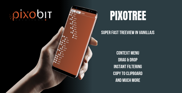 Pixotree was built for 2 main reasons. 1. Handling large datasets (> 1000000 nodes) without slowing the plugin down 2. Filtering that large dataset instantly It might not look the prettiest, but the underlaying control is insanely efficient. Feel free to change the look with css, and with the help of events, have the freedom to built just about anything out of it.Product Features: